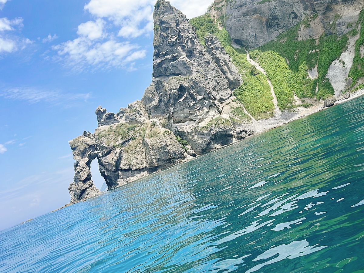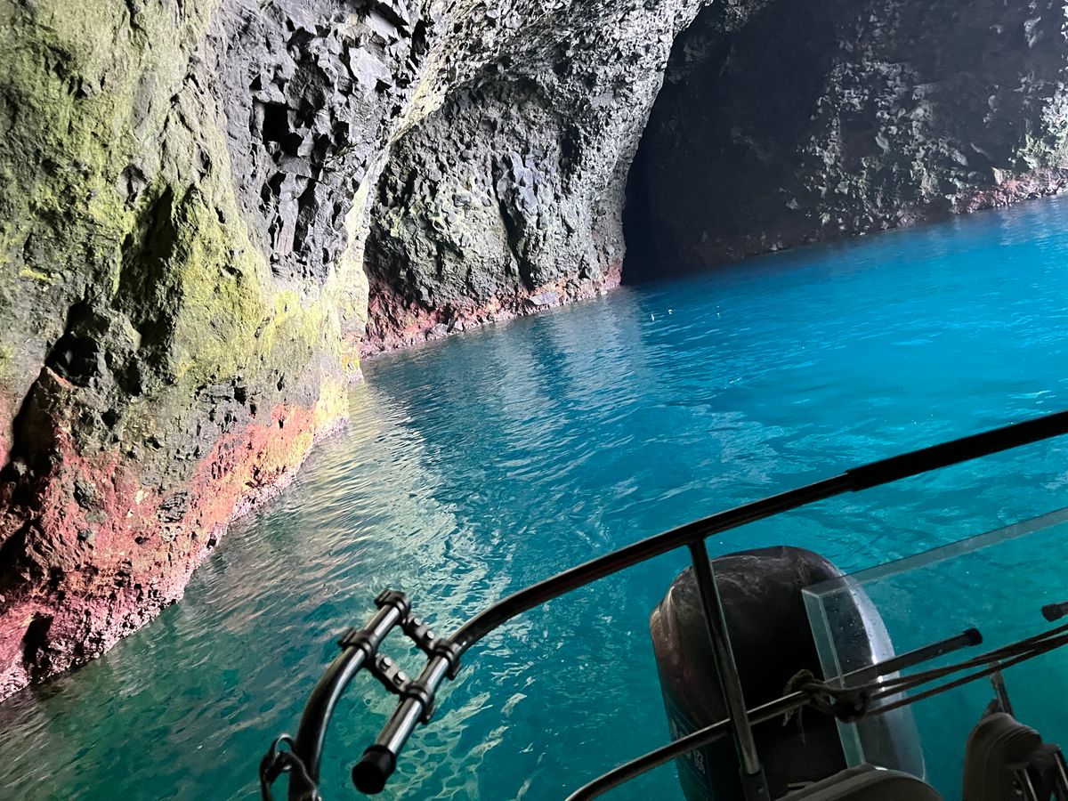 水面には少しまだ軽石がある状態でしたが、行った日はティファニーブルー的な青の洞窟で綺麗でしたっ!!