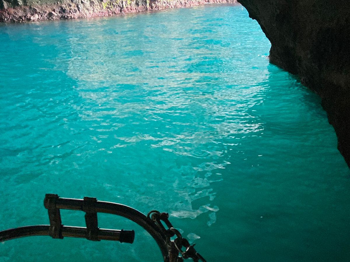 小雨が降ったりと天気は良くなかったのですが、洞窟の中の海の色は綺麗に見えました。