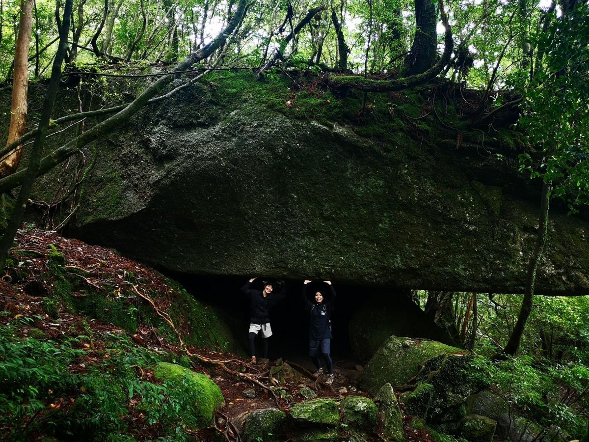 In the Shiratani Unsuikyo mossy forest, there was fog, and honestly, I thought we wouldn't be able to see anything at Taiko Rock, but it was great to see the ridge line and your emotional reactions.
