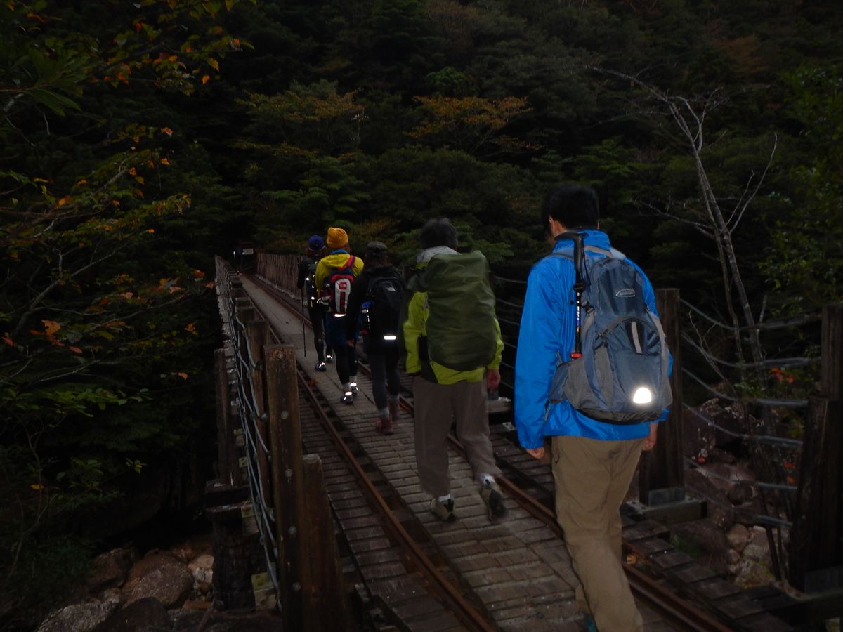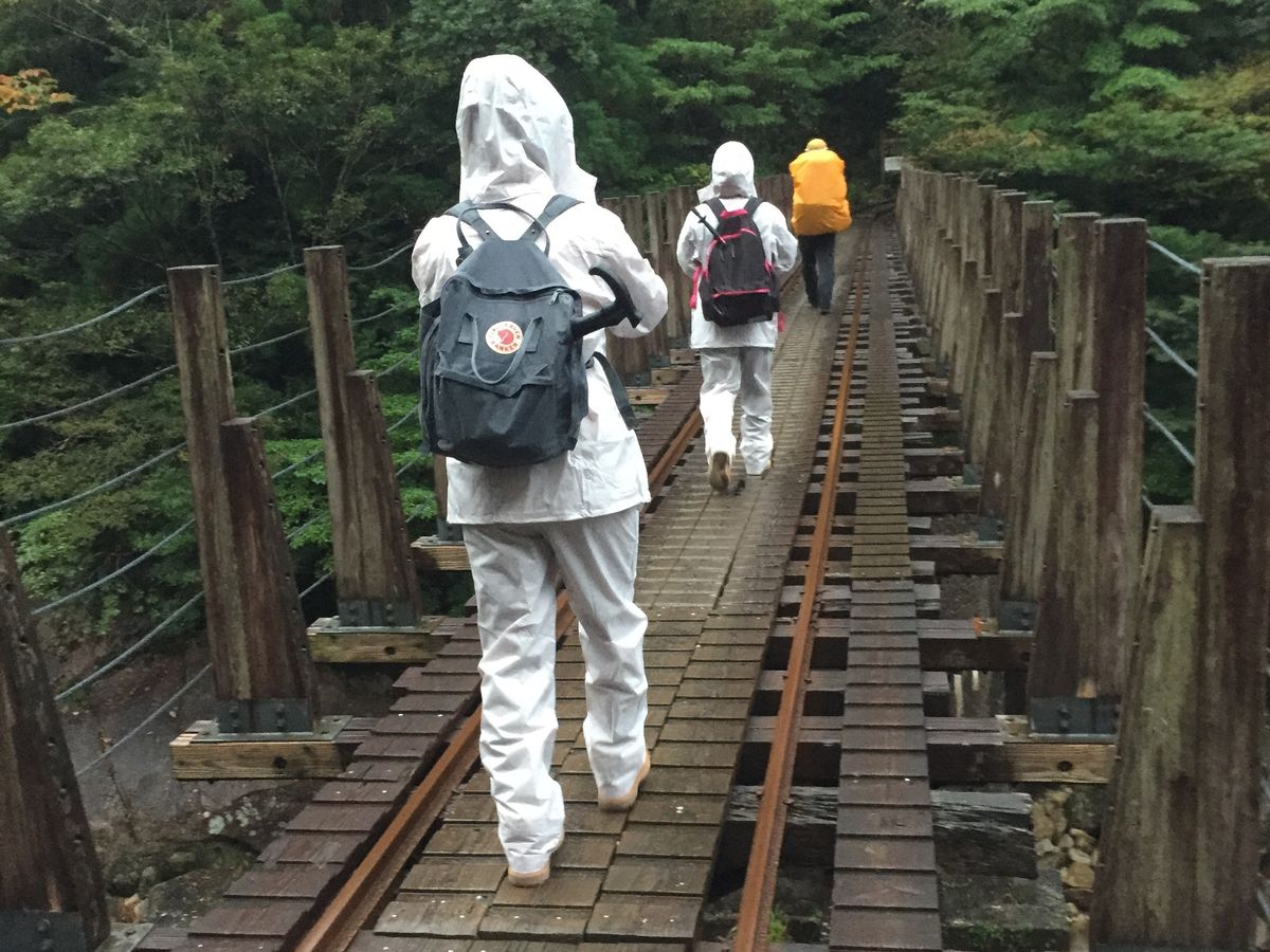 トロッコ道でときどき橋があり、その橋が危うい橋でスリル満点でかなりビビりました。みんなよく普通に渡れるなぁと感心しました。