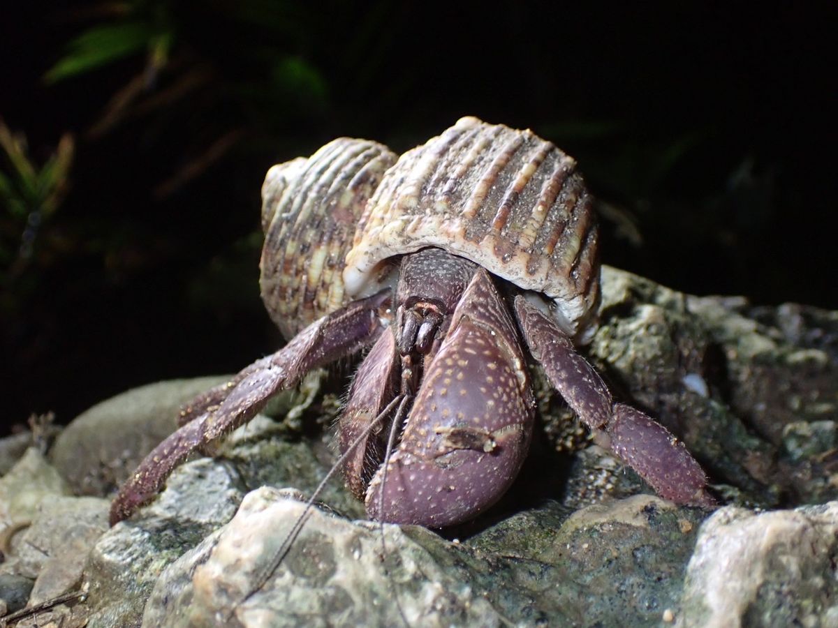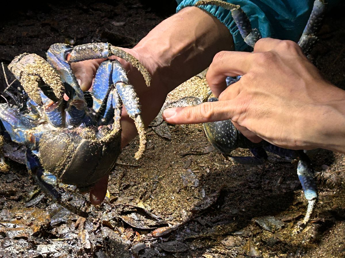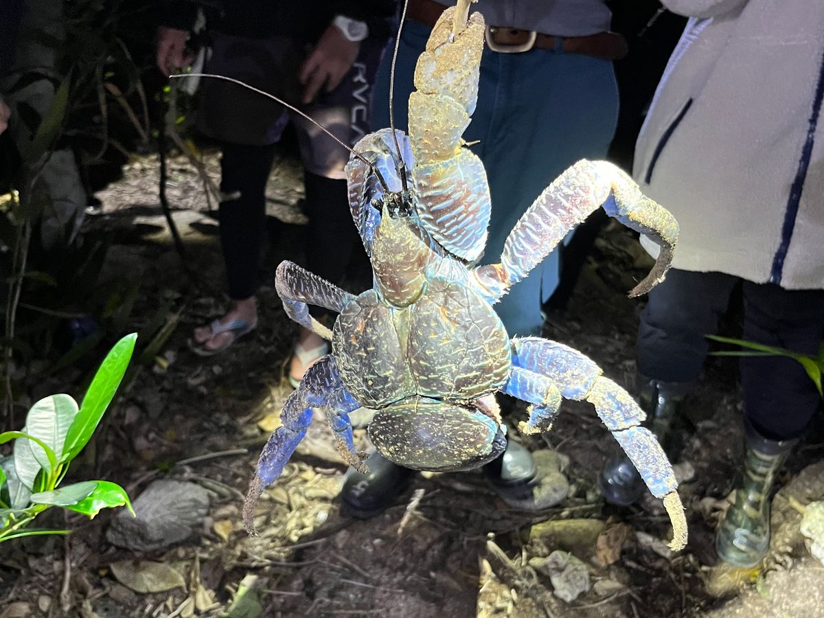 The tour truly gives you the thrill of moving through the jungle and reaching the sea. We searched for the coconut crab with everyone in the group, but... we ended up not finding any. However, it was fun to meet the coconut crab that another group found.