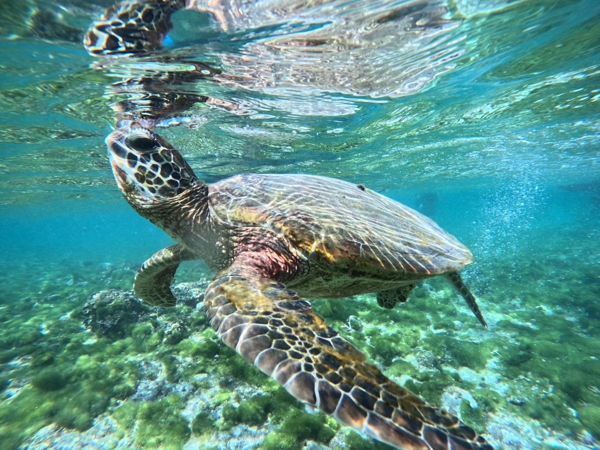 シュノーケリングは何度もしたことがありましたが、ウミガメの近くで泳ぐのは初めてでとても感動しました。