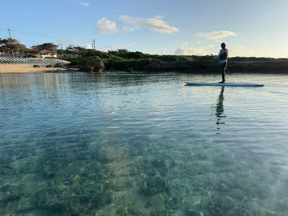 We had a few days where we couldn't experience our reservation due to the weather, but on the third day, the weather finally settled, and we enjoyed sea turtle snorkeling and stand-up paddleboarding (SUP). Although the activities differed from our original booking, they suggested options that suited the sea conditions, allowing us to enjoy safely. It was my first time doing SUP, and at first, I struggled to find my balance, but I was happy to stabilize quickly and had a lot of fun. I had snorkeled many times before, but swimming close to sea turtles was a first for me, and it was very moving. When I visit Miyako Island again, I would like to go to Pumpkin and the Blue Cave, so PiPi, I look forward to working with you again. Thank you very much for the recommendations for Miyako soba restaurants and sweet shops!