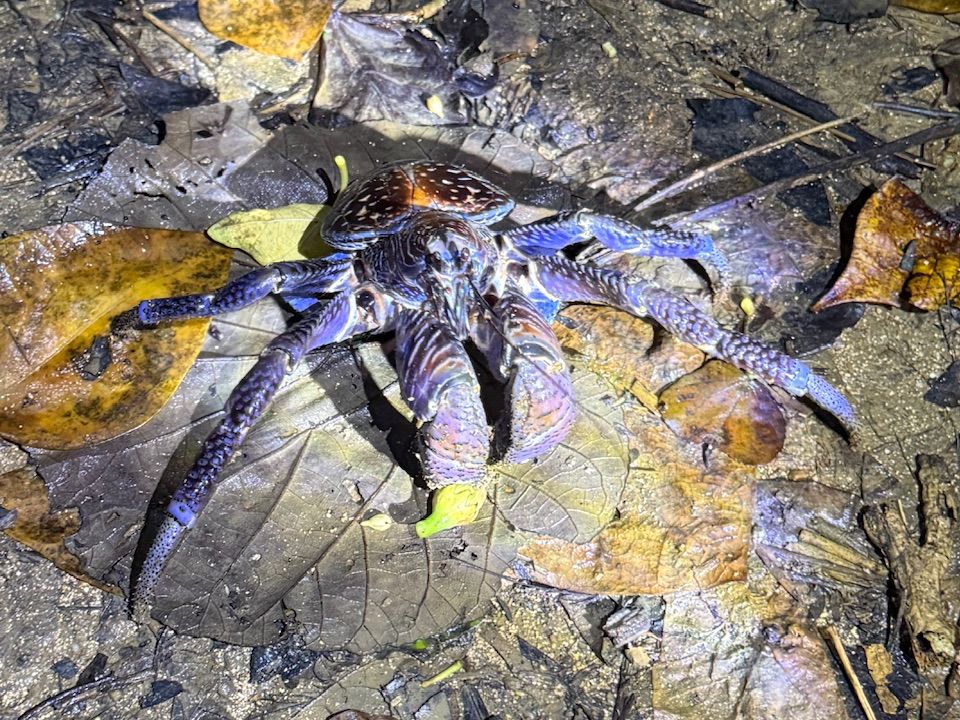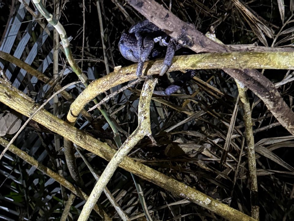 当日は天気が悪かったのですが、3、4匹のヤシガニ、カエル、その他カニとたくさんの生き物が見れました。