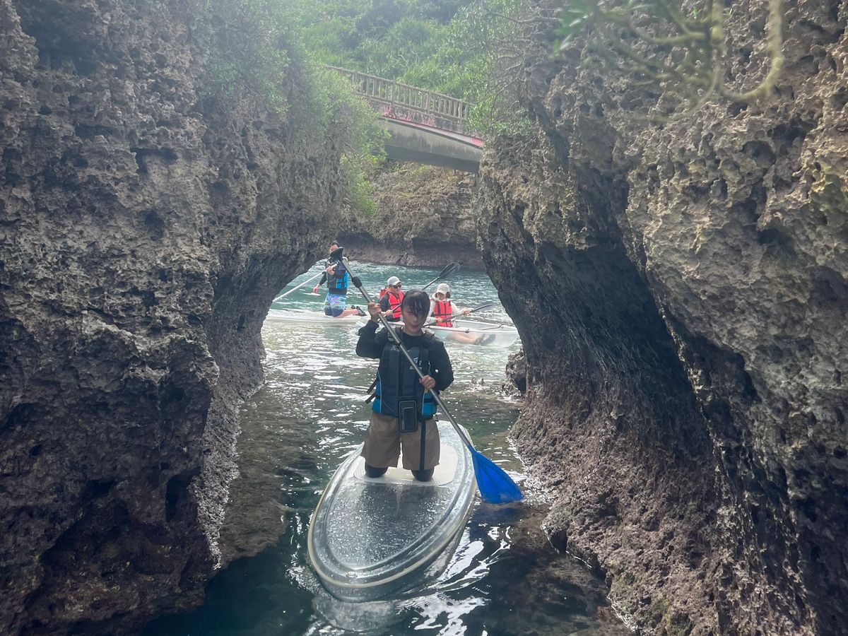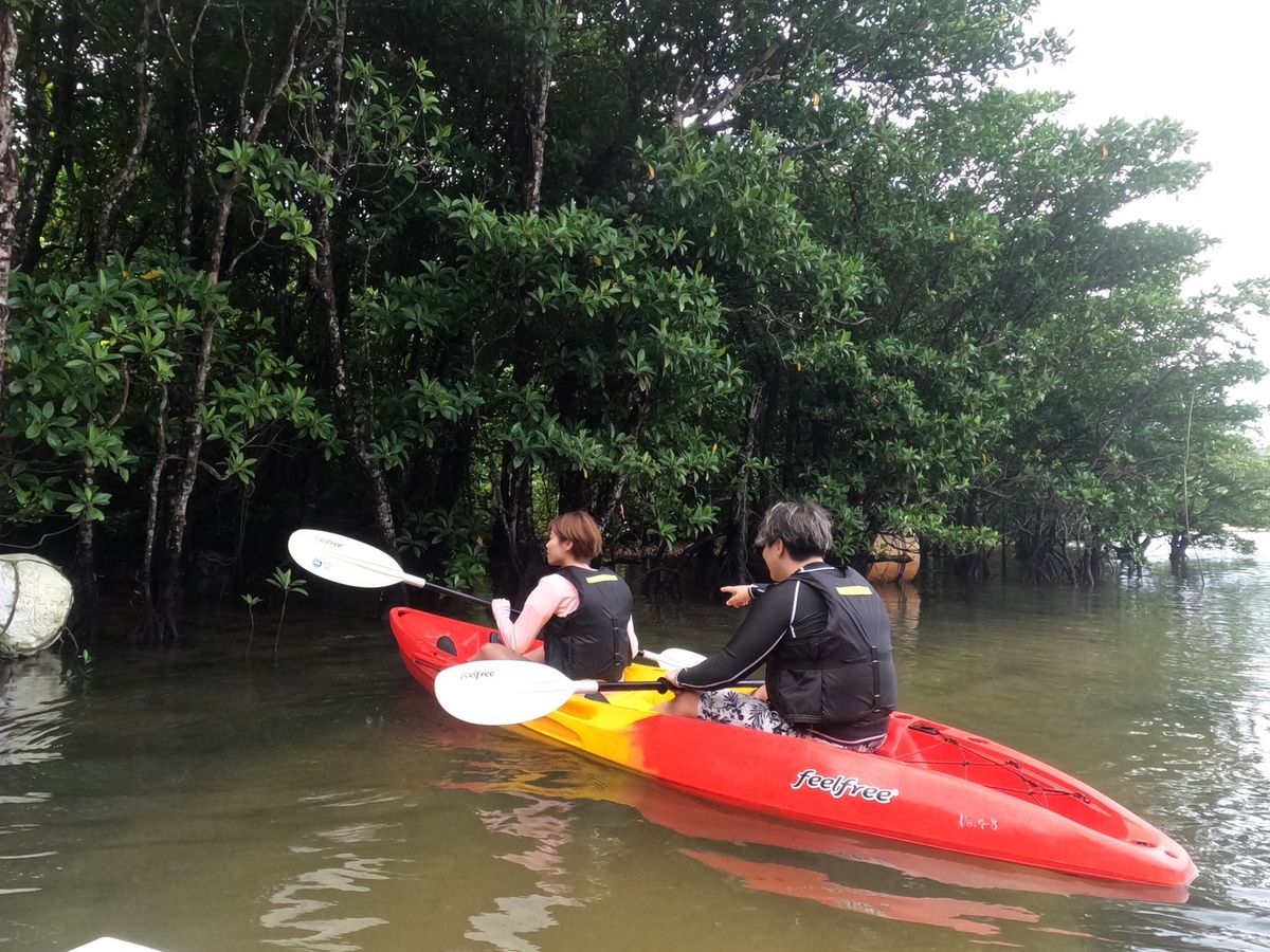 We were originally scheduled for Sunset SUP and snorkeling at the Blue Cave, but due to the typhoon, we changed to kayaking in the Miyara River mangroves and snorkeling at the beach.