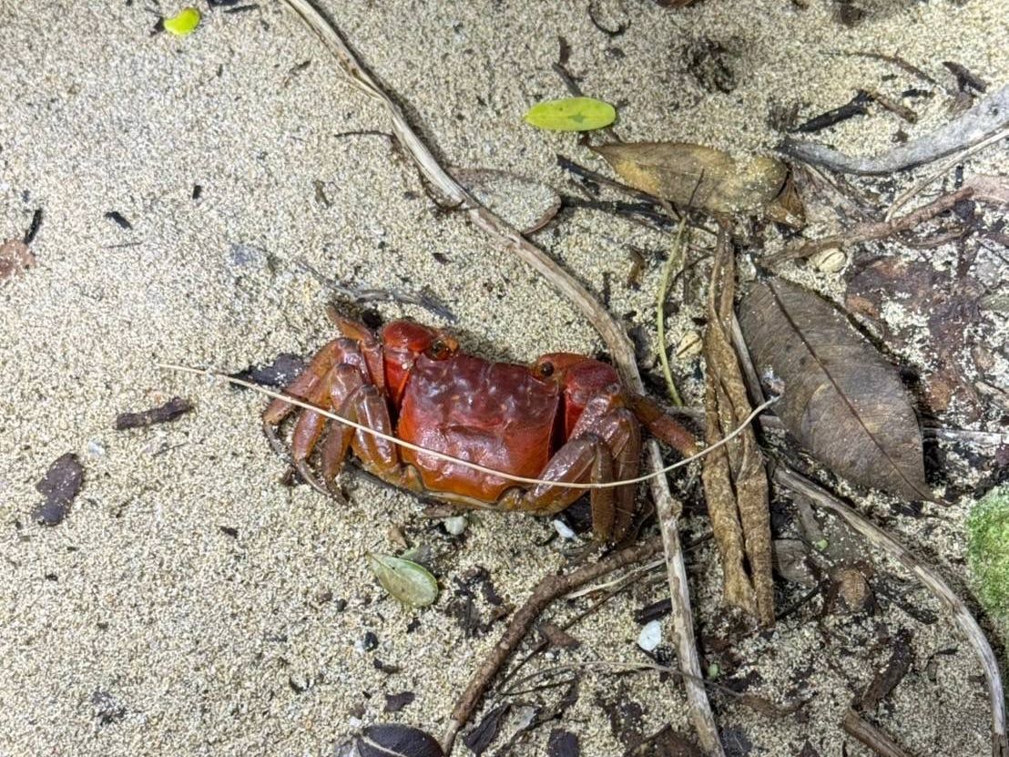 I encountered crabs, birds, and a mongoose.