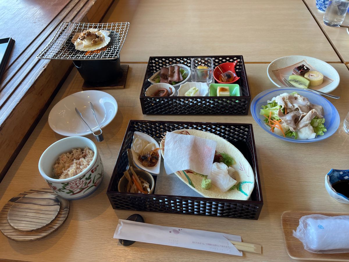 昼ご飯は洞爺湖が見える場所(いい雰囲気でした)