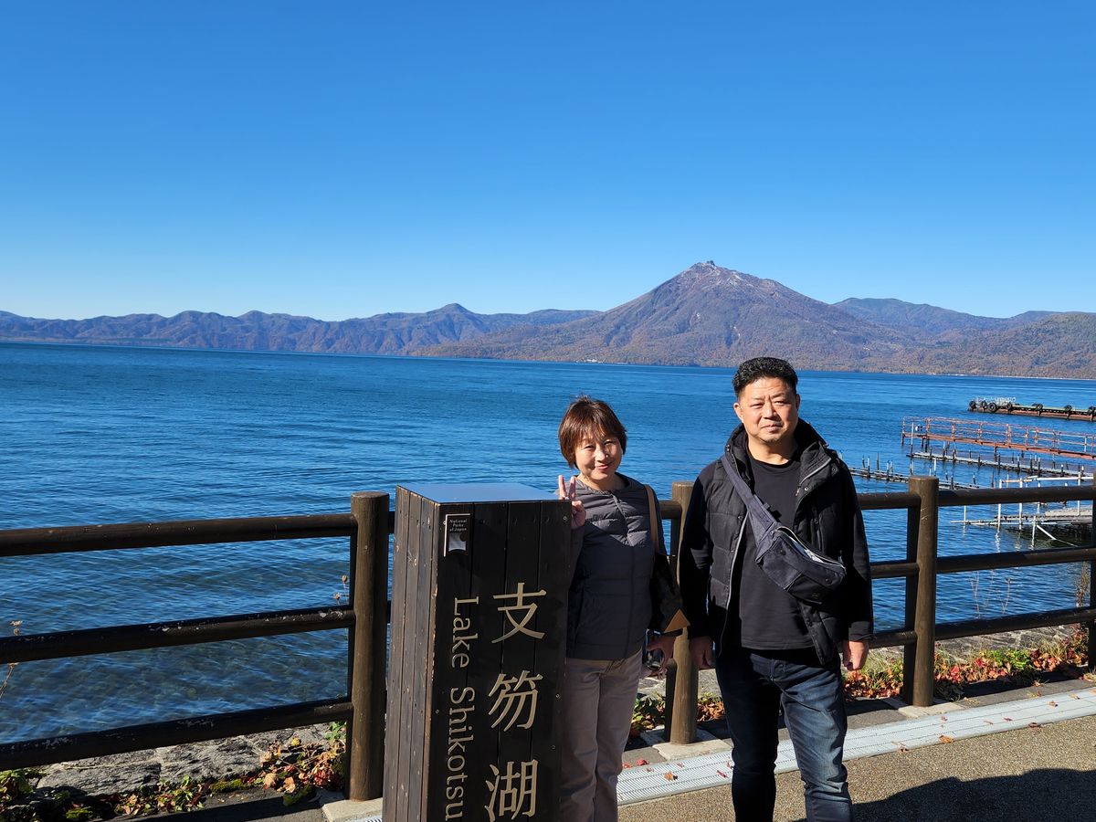On October 25th, I participated in the "Sapporo Departure Shikotsu Lake and Toya Lake Round Trip Bus Tour with Usuzan Ropeway & Lunch." The day before had been filled with cold rain, but on the day of the tour, the weather changed completely to a clear blue sky. It was a whirlwind day visiting Shikotsu Lake, Toya Lake, Showa Shinzan, Usuzan, and the Silo Observation Deck.