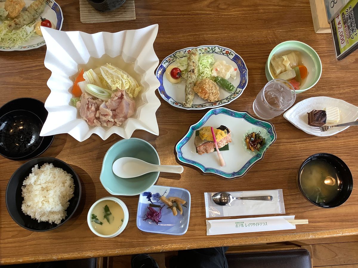 昼食です。まずレストランが寒い。ごはんが冷めている。