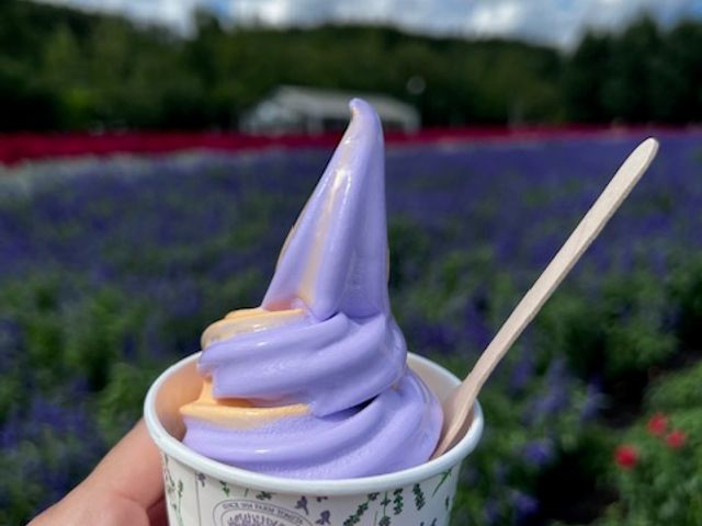 ツアーの最初の目的地は、ラベンダーで有名なファーム富田です。見頃は少し過ぎていたものの、紫色に染まった広大なラベンダー畑からは、甘く爽やかな香りが漂ってきて、とても癒されました。ラベンダーソフトクリームも味わうことができ、五感で富良野を満喫しました。