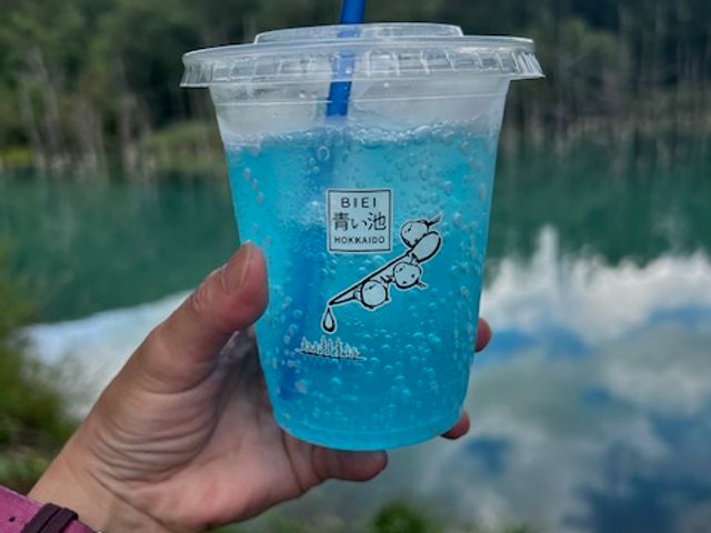 最後に訪れたのは、あの神秘的な青い池でした。水面が信じられないほど鮮やかなコバルトブルーに輝き、立ち枯れた木々とのコントラストが幻想的な雰囲気を生み出していました。写真で見ていた以上の美しさに、ただただ見入ってしまいました。
