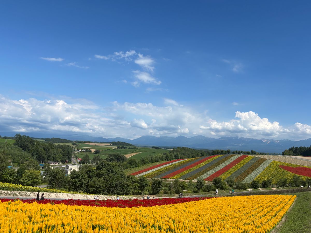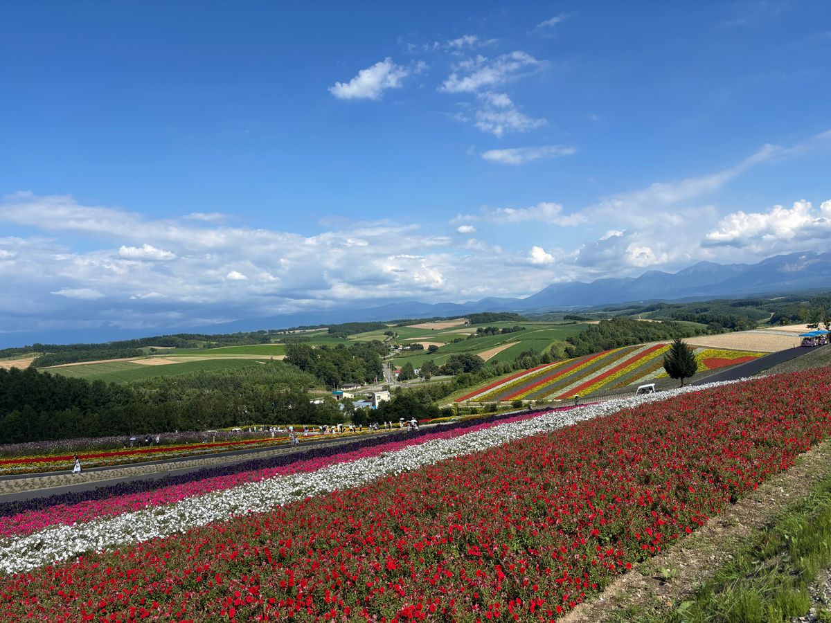Personally, I found Shikisai no Oka to be absolutely amazing, and I definitely want to come back. The views were great from everywhere! The flower fields were beautiful, and the green mountains and fields visible beyond the flower fields created a stunning landscape. Although there were many people, the area was very spacious, so it didn't feel crowded. I hope to ride the tractor and helicopter that I had to give up due to time constraints someday…