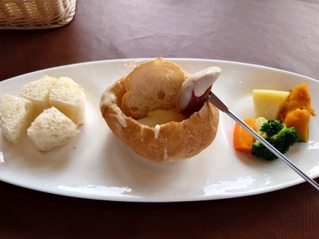 お昼ごはんのチーズフォンデュ美味しかったです。