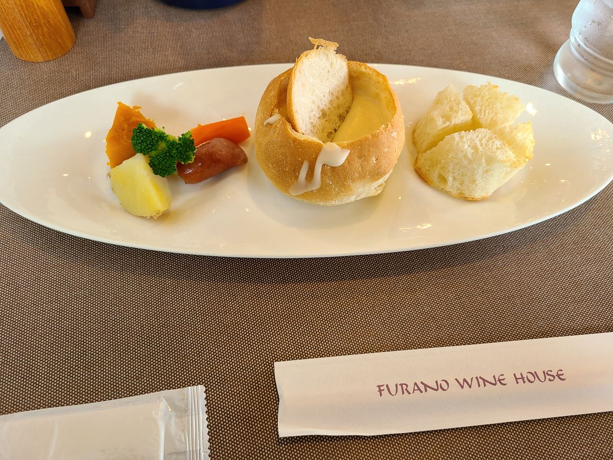 The lunch at "Furano Wine House," just a few minutes away, was as delicious as the reviews suggested, and I was very satisfied! Surprisingly, my husband, who usually dislikes pork, finished the 100% pork hamburger. (It was tender and the Japanese-style sauce was tasty.) Even I, who am not fond of solid cheese, found the mini cheese fondue here so good that I want to eat it again.