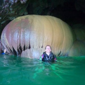 午後はシーカヤックでパンプキン鍾乳洞へ行きました。道中のシーカヤックはとても楽しく、鍾乳洞は神秘的な様々な鍾乳石やそこにまつわるお話などガイドさんの説明もわかりやすくて、とても興味深いものでした。このアクティビティが、旅行での一番の思い出になりました!これもイケメンガイドのてっちゃんのおかげです。ありがとうございました。