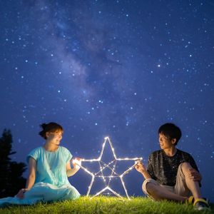 On the night of the event, we headed to the stargazing spot. First, the female instructor from Tokyo who assisted us was incredible. No, she was a goddess. We chatted happily as we made our way to the photo spot. Right off the bat, she said, "I’m particular about this." We hadn’t thought about anything, and we were grateful for her guidance. We gave our all as human beings, following the goddess's lead. During the final photo check, we were both stunned. Had we ever seen such a beautiful starry sky, and more importantly, had we ever seen ourselves like this?
