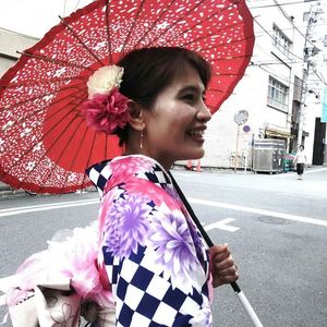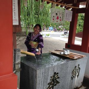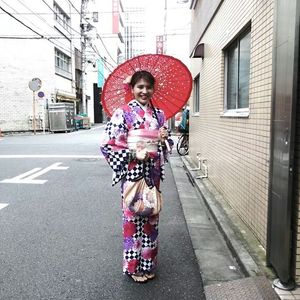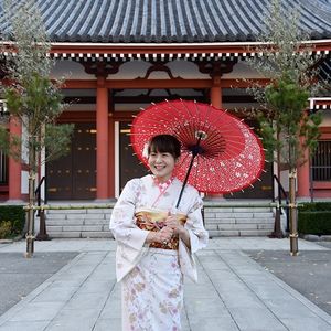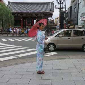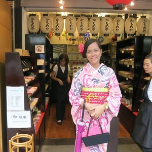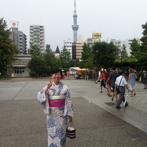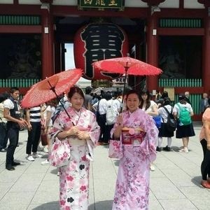 My husband and I arrived an hour late due to our mistake with trains. Despite this we received a warm welcome from Sakura-san. She was welcoming to both of us. She let me choose the Kimono and dressed me. She chose the flowers and shoes to match with the Kimono. I brought a paper fan but rented an umbrella as it was a hot day. Sakura San also gave me a 5% off voucher for rickshaw but I did not use it. I received compliments from many Japanese woman and also a lot of attention from tourists. I was asked by a western tourist if he could take my photo. I was very pleased with her service as I would recommend it to any lady to when in Tokyo. Asakusa is an appropriate location.