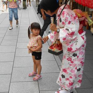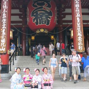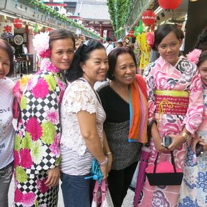 お店の方が英語、韓国語など、外国語がすごく堪能で、手際もよく、親切に着物のきつけ、女性の髪形のセットもしてくださり、友人たちは大喜び。着物の着付けが終わって、早速、浅草寺、仲見世に繰り出したところ、いろんな他の外国人や日本人の観光客の人達に声をかけられ、ちょっとしたスター気分に、またまた、おお喜び。
