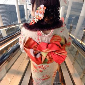 Every year, I enjoy wearing a kimono at the end of December. This year, I used Kim's Sakura Photo Studio again. As always, the dressing time was incredibly quick! There were two of us, and the total dressing time was about 30 minutes, so it went by in no time with two staff members assisting us. The variety of kimonos in terms of colors and patterns was abundant, even more so than last year. I chose a somewhat subdued colored kimono with a flashy obi, accented with pink. We entered the studio at 10:30, and our free time started at 11:00.