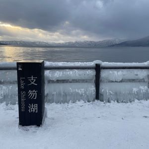 The snowy scenery of Lake Shikotsu is beautiful!