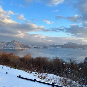 There were nearly 40 participants today, and I was the only Japanese person. The guide was from Shanghai and spoke Chinese, English, and Japanese. That's impressive. Lunch was free, but while I was eating scallop fried rice at a recommended restaurant, a few people from the same bus came in. I thought it might be difficult to make detailed orders, but the guide appeared and took the orders together with the staff. I was impressed that both the staff and the customers were very helpful. It was wonderful. The conversation was interesting, and I found myself laughing while listening to the explanations. Unfortunately, the wind was strong, so I couldn't fully enjoy the beauty of the lake, but I was able to feel the nature that is not just beautiful. What left a strong impression on me personally was Showa Shinzan. I was able to see it up close from near the ropeway station of Mount Usu. Smoke was coming out from various places on the mountain. Perhaps due to the high surface temperature, there were areas without snow, giving it a rugged feel. I'm really glad I participated.