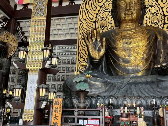 その後に行った越前大仏は、とにかくスケールが大きくて圧倒されました。雪で一部入れなかったのは残念でしたが、大仏を見ることができてよかったです。