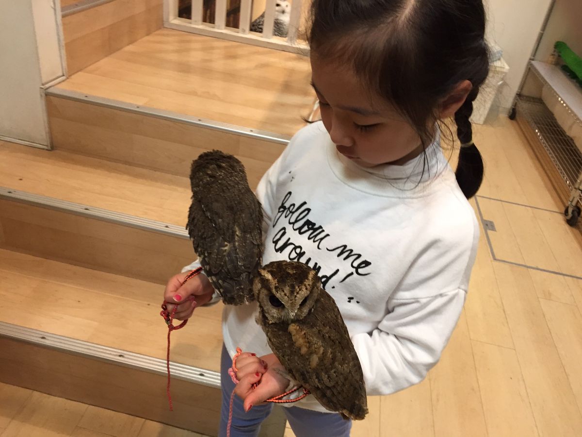Visit one of Japan's famous owl cafes while in Fukuoka! Located near Hakata Station, you can take pictures with cute owls while they perch on your shoulder or head. Experience a real animal cafe!