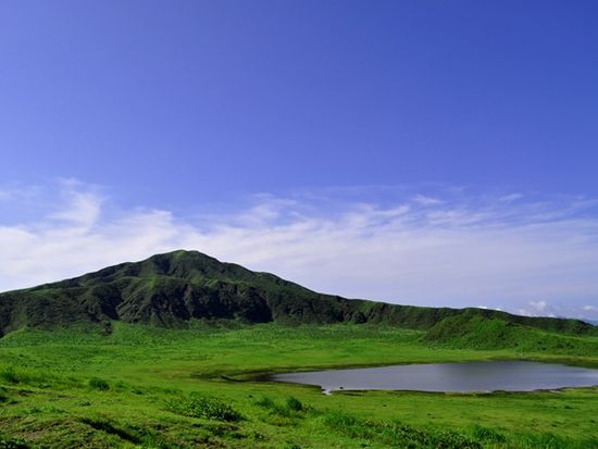 Kusasenrigahama is a vast grassland at the foot of Mt. Eboshi, one of the Aso Five Peaks. It offers stunning views with grazing horses and cows, and beautiful scenery that changes with each season.