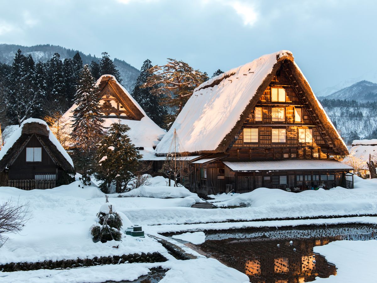 合掌造りと雪が日本の冬の景色を演出してくれます