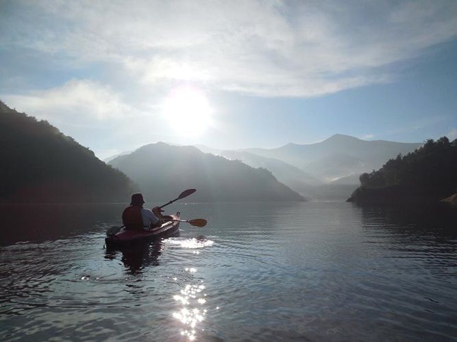 Set out onto the quiet lake early in the morning, and watch as the sunrise slowly brightens the day as the light rolls over the mountains and onto the water.