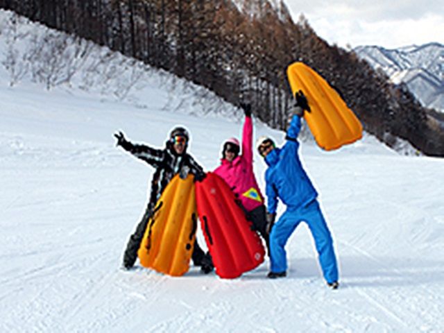 Race down the snowy slopes of Gunma on an easy to control inflatable air board. Great for a wide age range, this easy to learn sport is full of fun thrills.