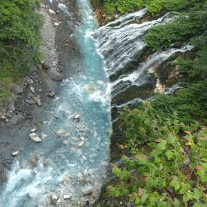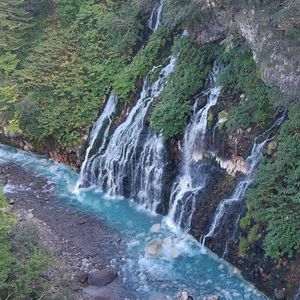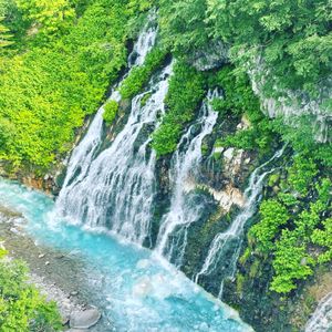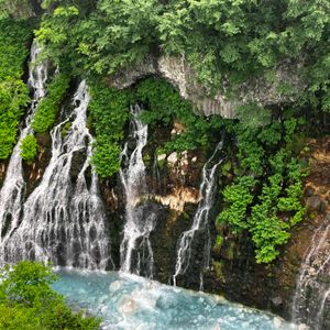 I thought it would be better to wear comfortable shoes at the Blue Pond since the path was bumpy. The soft serve ice cream was delicious. We viewed the waterfall from a bridge, and it was very beautiful.