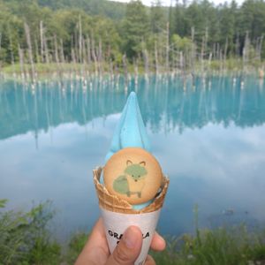 青い池は道がガタガタなので歩きやすい靴で行ったほうがいいなと思いました。ソフトクリームが美味しかったです。