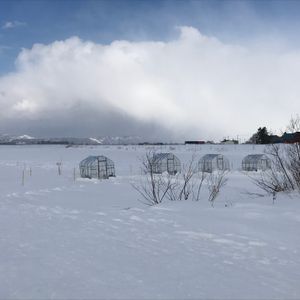 牧場の入り口にいる羊や馬を見ながら小一時間ほど丘を登っていき、頂上に着いたら、雪を掘ってテーブルとイスを自作し、ガイドさんの淹れてくれる熱い紅茶で休憩しました。道中、SNS映えする撮影スポットでガイドさんが写真を撮ってくれ、ツアー後、その写真をiPhoneのAirDropですぐに貰えます(もちろん無料)。