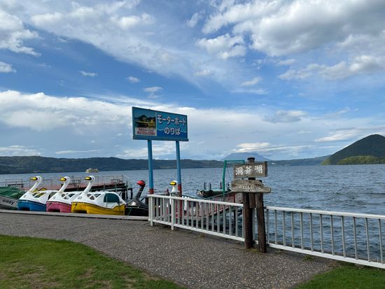 Shikotsu Lake had heavy rain, and the highway was closed, so we had to take a detour. We went from Shiraoi to Lake Toya. That route was also affected by the heavy rain, creating a unique experience with splashes of water. Thank you to the driver for your hard work. When we arrived at Lake Toya, the rain had stopped, and we were able to see beautiful scenery.