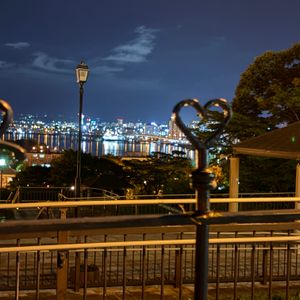 We avoided the crowds and were guided smoothly to the elevator. When we turned on the light we had, it illuminated just us, making for a great photo with the night view in the background. The commemorative shot turned out to be very satisfying.