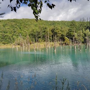 青い池が青く見えるには前日に雨が降っていない且つ午前中の強い太陽光が条件なのだそうですが、私が行って着いたのは午後且つ午前中雨でしたがエメラルドグリーンで綺麗でした!やはり一見の価値ありです!