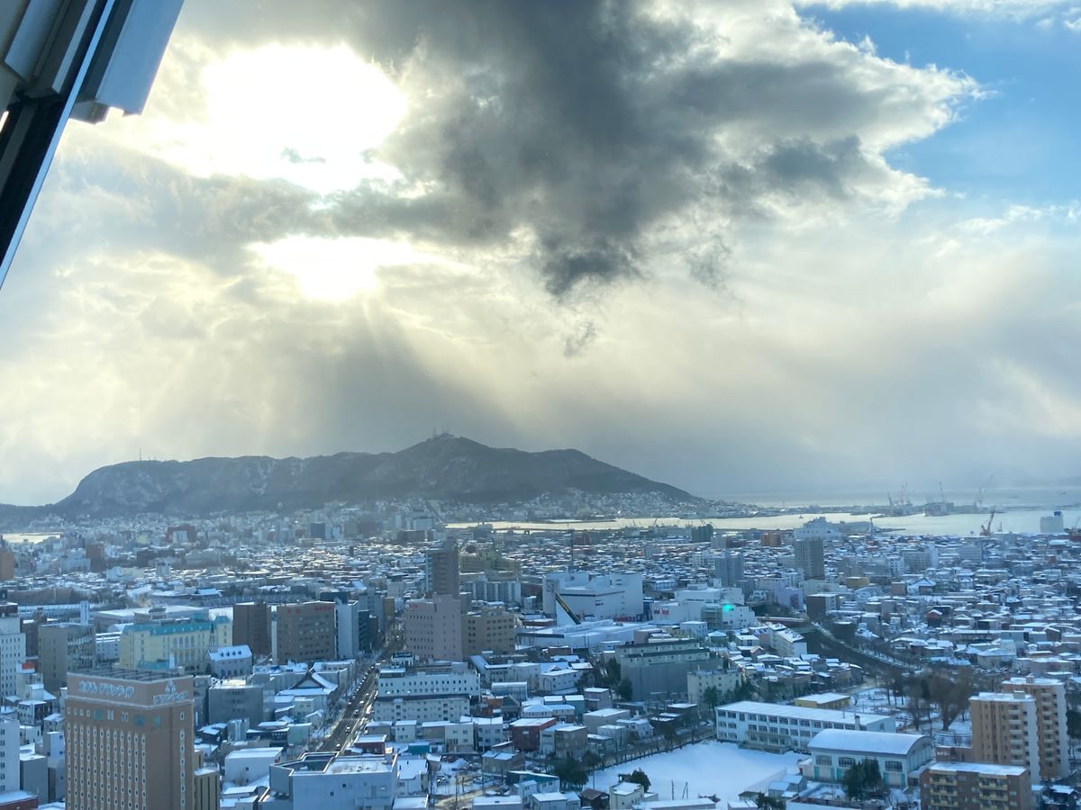 函館山も雲の隙間から太陽が出ていて綺麗でした。