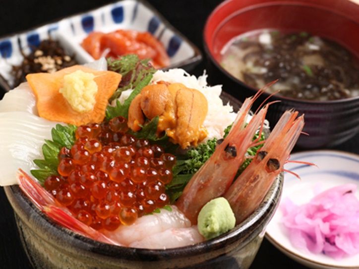 The tanks hold seasonal seafood, prepared upon order. Enjoy the freshness and price only a direct seafood wholesaler can offer. The customizable Seafood Goshoku-don is perfect for those with discerning tastes.