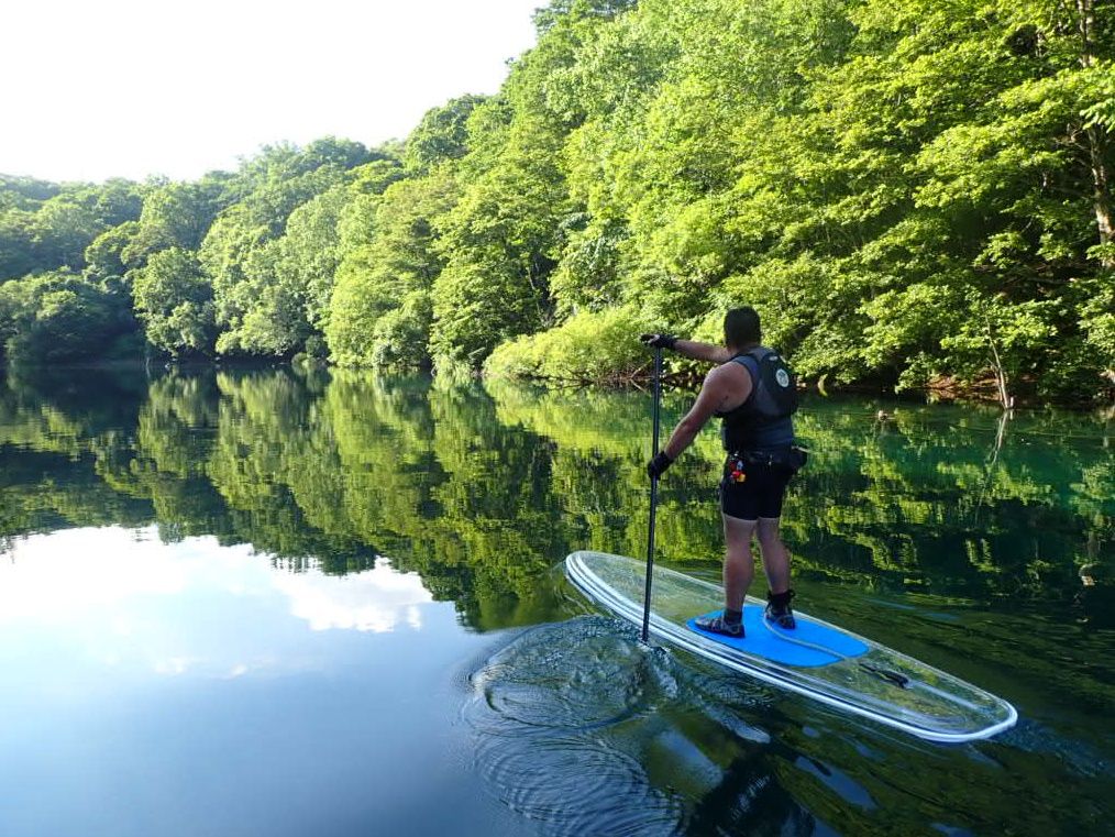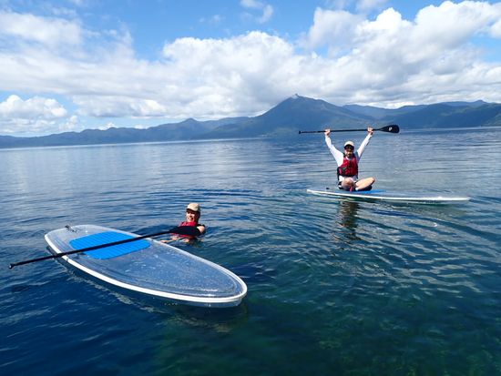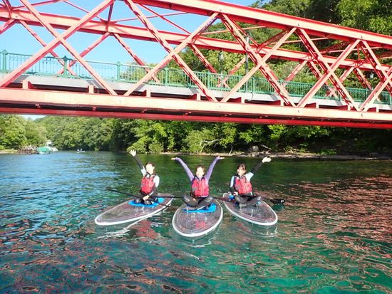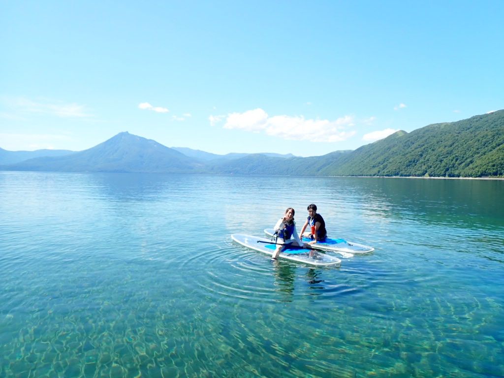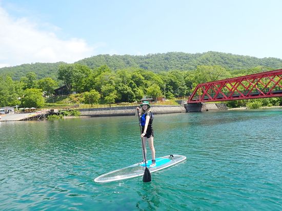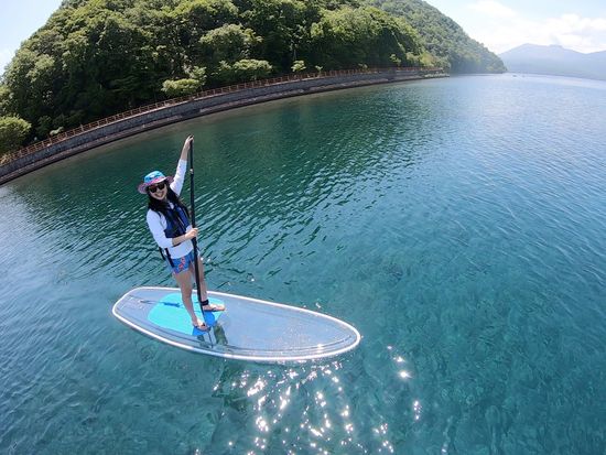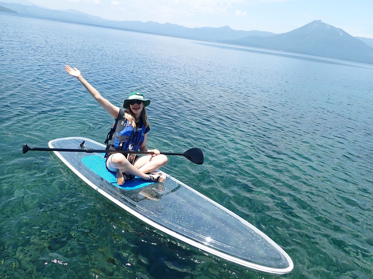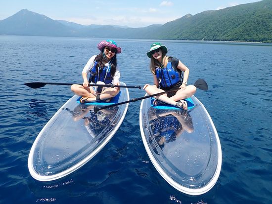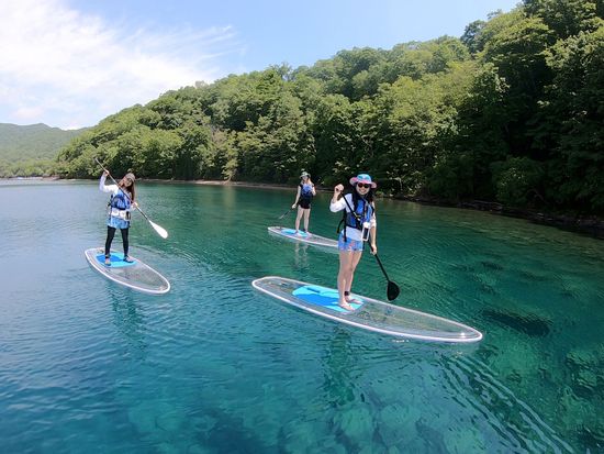 Experience the sparkling blue waters of Lake Shikotsu on a transparent board. The large, stable board ensures even beginners can enjoy with ease. Free equipment rental and photo data from the tour are included!