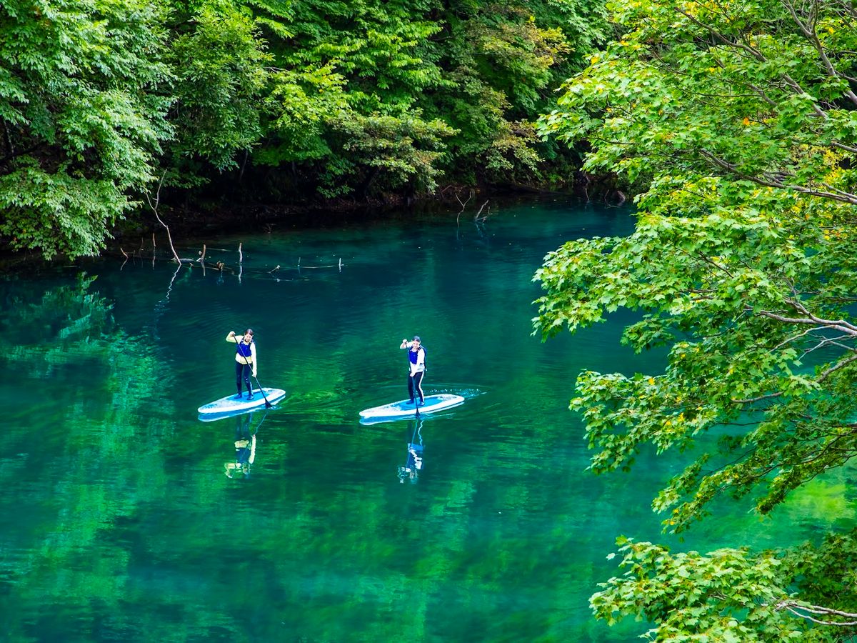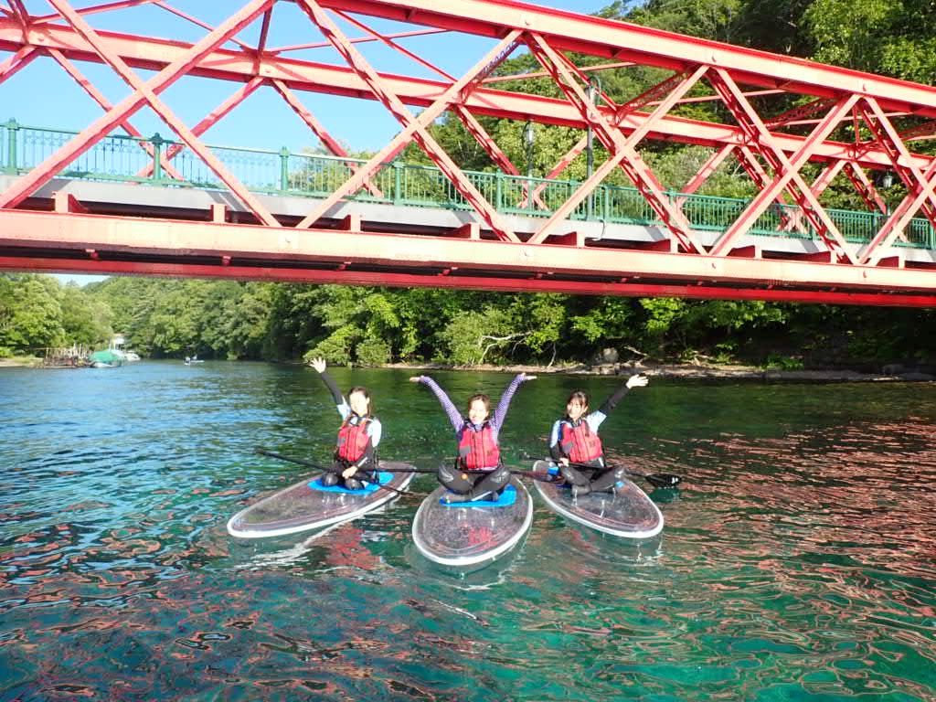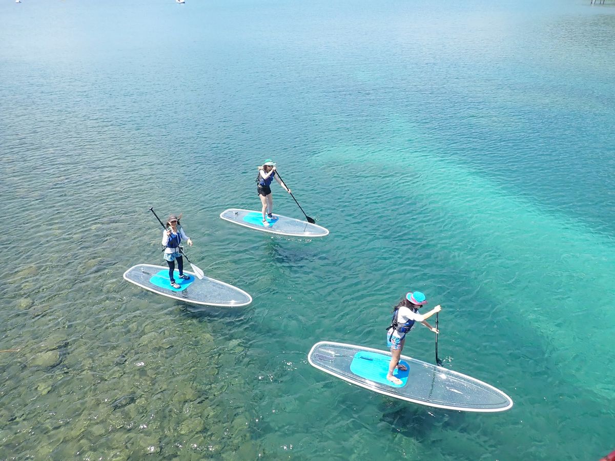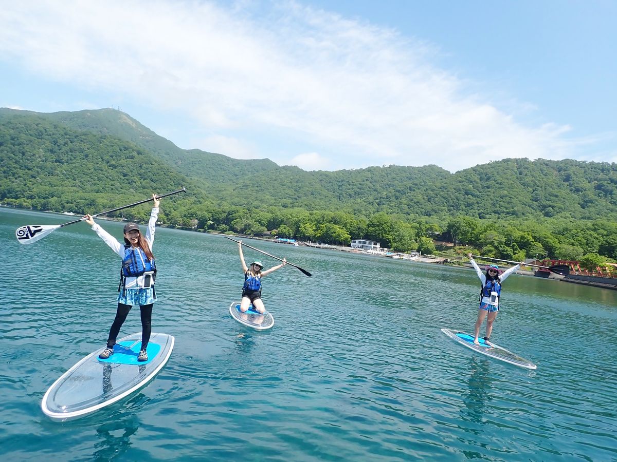 Experience the sparkling blue waters of Lake Shikotsu on a transparent board. The large, stable board ensures even beginners can enjoy with ease. Free equipment rental and photo data from the tour are included!