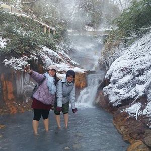 I had no experience walking in the snow, and the guide provided rubber grips for my shoes. The tour company's vehicle parked very close to the foot bath, and it took less than five minutes to get there easily. This tour not only guided us to the foot bath location but also provided detailed information about the walking trail to Oyunuma, the frost-covered trees visible because of the hot springs, the origin of Noboribetsu Onsen, geographical introductions, and the different types of hot spring waters. Additionally, the guide kindly prepared mats and towels for us to enjoy at the foot bath. It was a lot of fun!