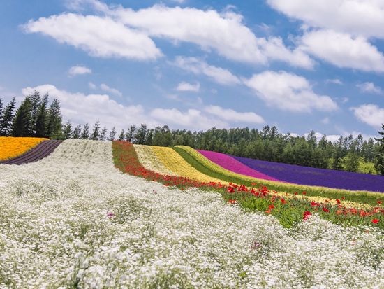 Departing from Sapporo, this day trip bus tour explores the Furano and Biei areas. Visit Farm Tomita, Shikisai no Oka, and the Blue Pond efficiently. Enjoy a lunch of petit cheese fondue and hamburger steak. This course offers seasonal scenic views.