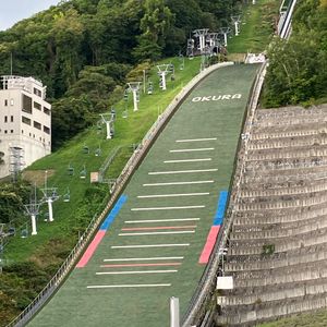 At the Okurayama Jump Stadium, the view from the top after taking the lift is quite impressive. I think it's a place that you wouldn't normally visit individually unless you're on a tour, but it's definitely worth seeing.