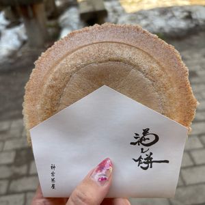 I participated in the tour feeling nervous and alone. There were 23 people from China and 2 Japanese, but Mr. Yagyu and Dr. Ishii from T/c were experienced, which made me feel at ease. We packed a lot into a short time and had an amazing experience! I also got along well with the Japanese participants, creating wonderful memories of Sapporo! If anyone is hesitating, I highly recommend it! It's a once-in-a-lifetime experience! I wanted you to try the lucky rice cakes from Hokkaido Shrine, so I included a photo!