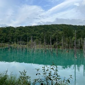 青い池は道がガタガタなので歩きやすい靴で行ったほうがいいなと思いました。ソフトクリームが美味しかったです。