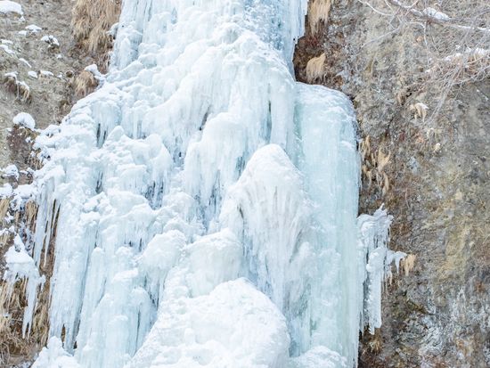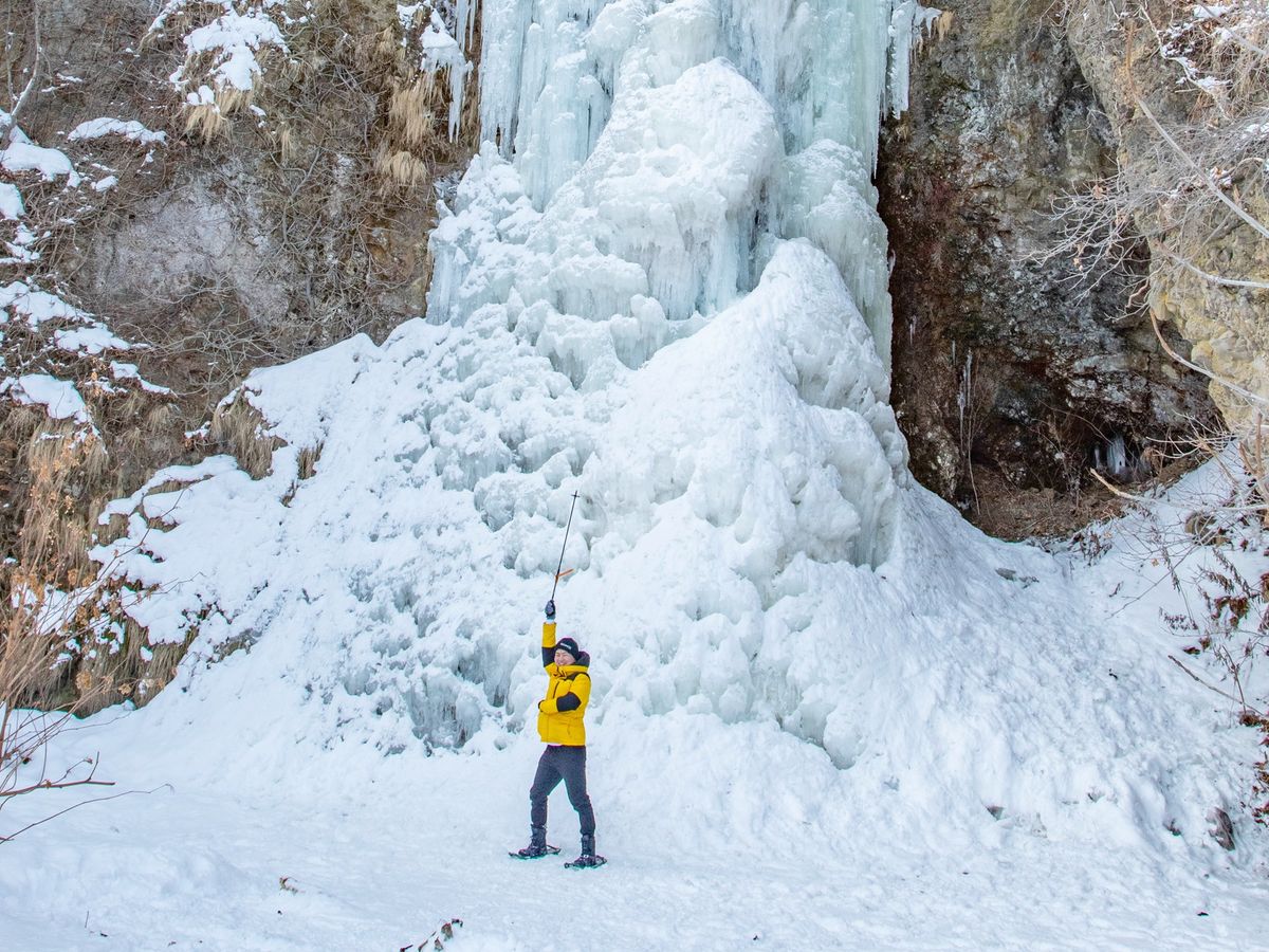 Enjoy the beauty of winter Okhotsk! As you pass through the deep snowy forest, you will arrive at a hidden place where you can see the Sea of Okhotsk completely covered in white. Guide will take you to the icefall "Kujira no Taki''.