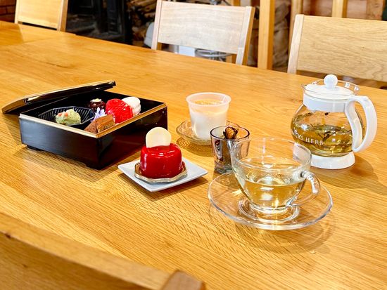Enjoy Japanese sweets from a popular Kitami shop where you can be healed by herbal tea made from Okhotsk herbs grown organically and without the use of pesticides, as well as specialty layered sweets with fresh cakes.
