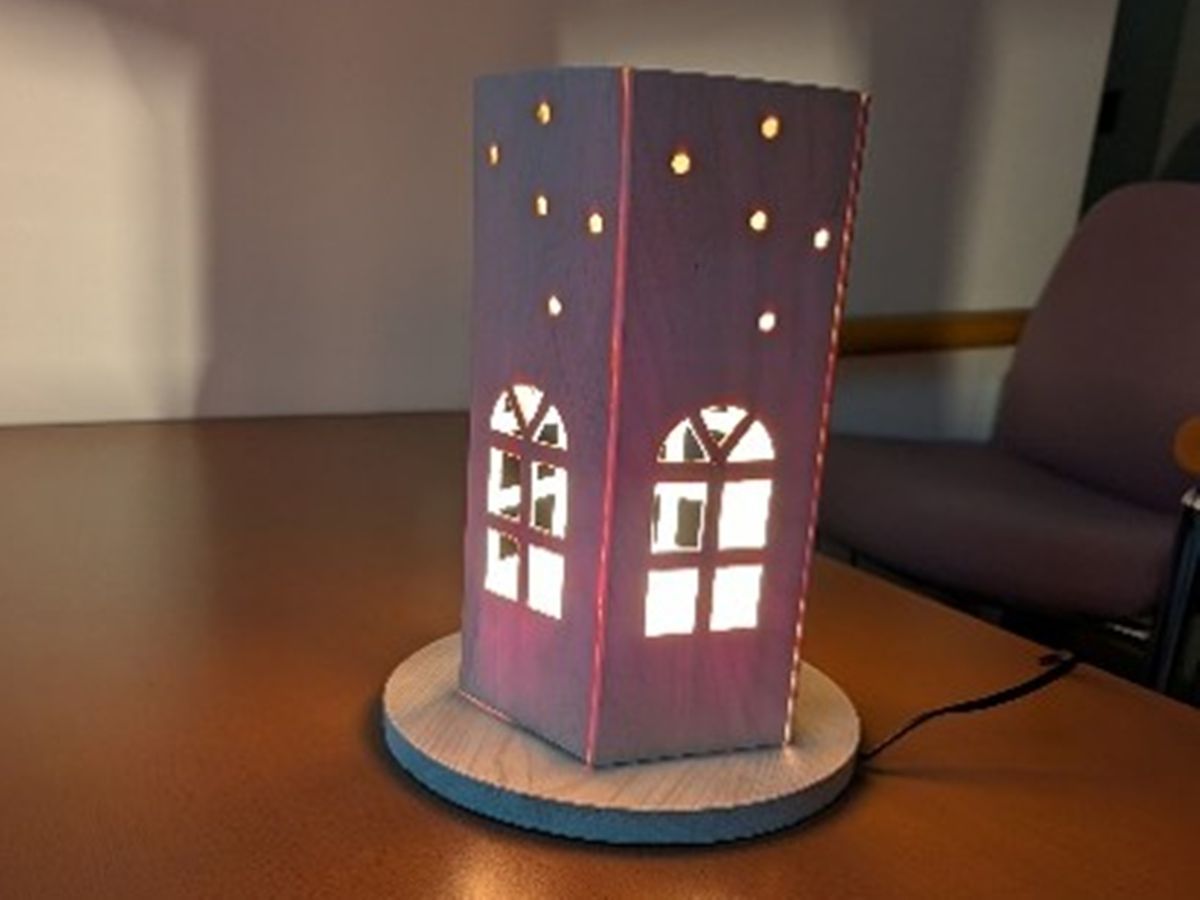 Handmade lampshade softly lit