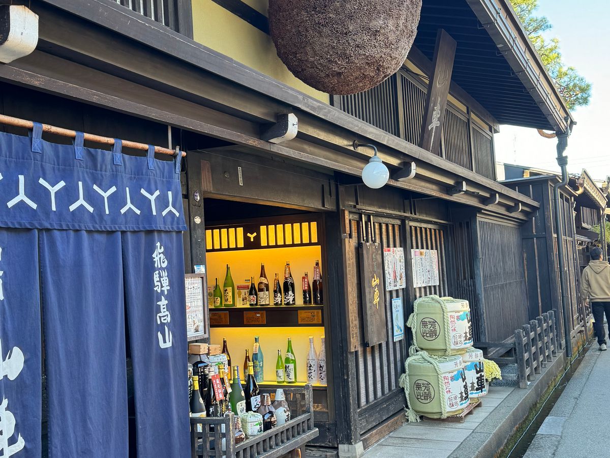 On the bus tour that included lunch, we were able to visit not only Shirakawa-go but also Takayama. In Takayama, there was a shop where we could sample sake using a coin-operated server, which was really great.